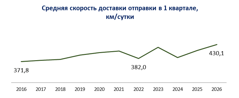Скорость доставки грузов (километров в сутки) — это то, что на самом деле важно для бизнеса. Она учитывает все этапы: от отправки до получения.