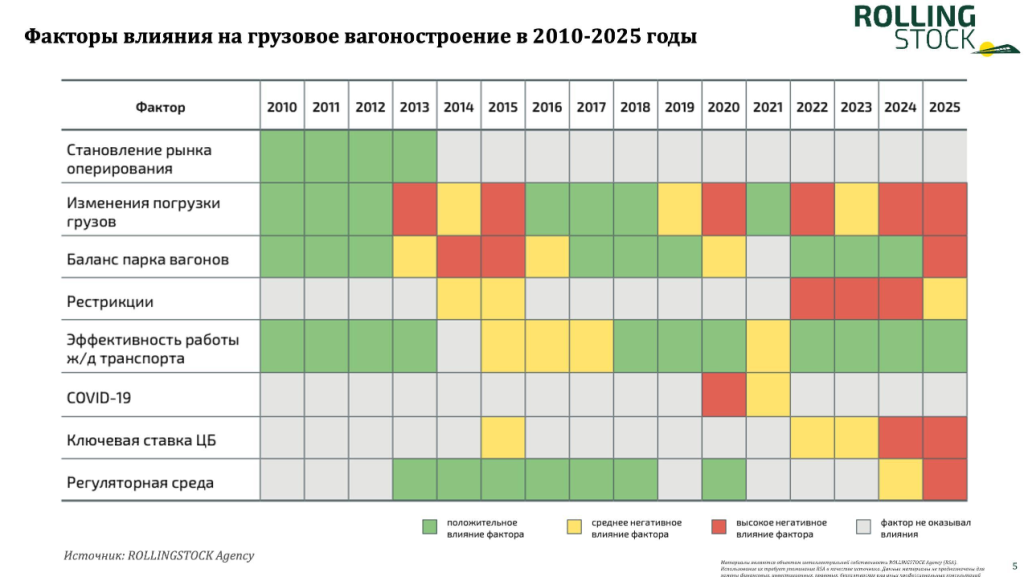 Прошедшие 2010-2025 годы характеризовались для вагоностроения следующими периодами: