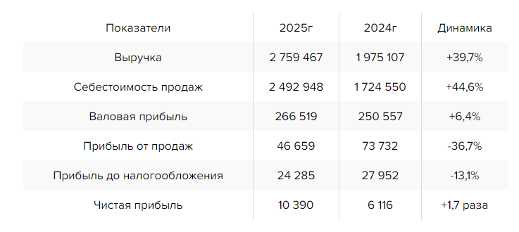 Кредиторская задолженность компании выросла с 325,92 млн рублей на 31 декабря 2024 года до 486,39 млн рублей на 31 декабря 2025 года, дебиторская - с 88,77 млн рублей до 130,97 млн рублей.